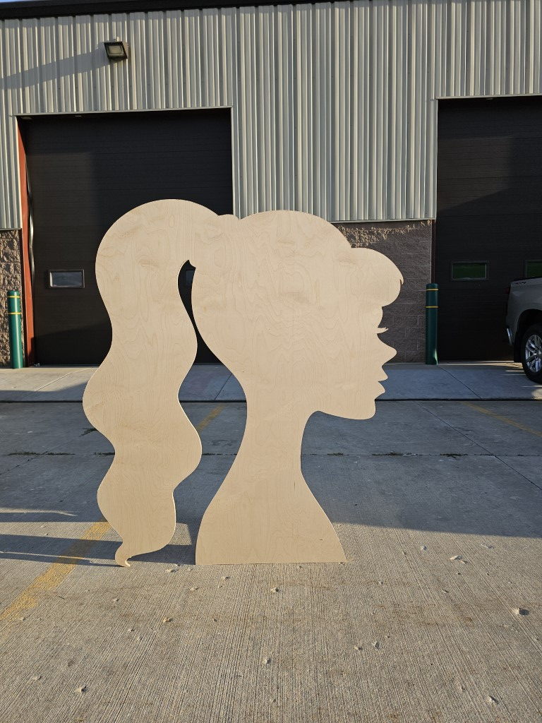 Side view of the Barbie head. Comes equipped with a stand on the back. Anything bigger than the size listed below requires to be assembled in two pieces.
